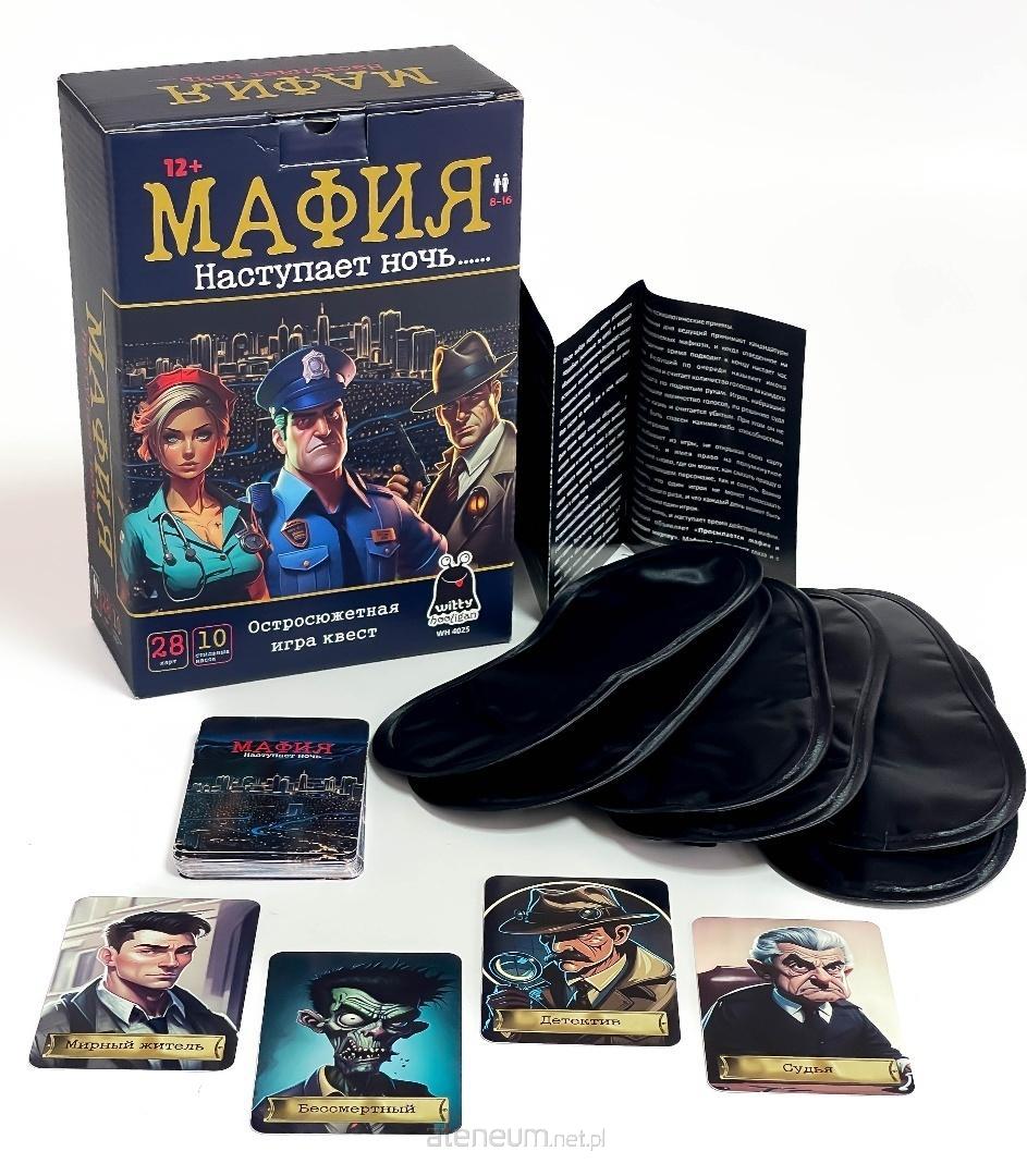 Mafia to jedna z najpopularniejszych współczesnych gier psychologicznych. Rozwija umiejętności manipulacji i przekonywania, aktorstwa, pracy zespołowej, logiki, pamięci i koncentracji. Jednocześnie nie wymaga znajomości skomplikowanych zasad. Grupa, która sięgnie po te karty, na pewno spędzi czas bardzo ciekawie. W grze może brać udział od 8 do 16 graczy.