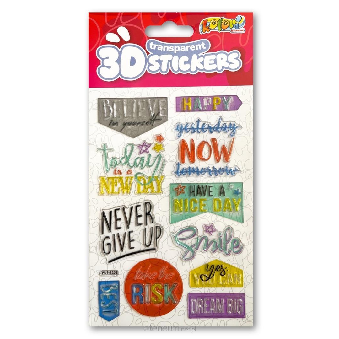 Wypukłe naklejki na transparentnym podłożu. Zróżnicowana ilość sztuk na arkuszu. Do zdobień na kartkach okolicznościowych, pocztówkach, pudełkach na prezenty, torbach prezentowych, do dekoracji domu. Łatwo usuwalne . Format 11x20 cm.