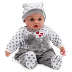 Piękna lalka dla dzieci PlayTo. Wspaniała zabawka dla każdej małej dziewczynki, która będzie miała własne mówiące dziecko. Głowa, ręce i nogi wykonane są z gumy, a ciało z miękkiego materiału, dzięki czemu dziecko może ładnie przytulić się do lalki. Lalka posiada smoczek. Lalka ma uroczą twarz, która wygląda jak prawdziwe dziecko i podbije serca małych dziewczynek swoimi oczami i ustami. Ma urocze ubrania i czapeczkę. Ubrania można zdjąć i wyprać. Długość lalki wynosi 46 cm. Zapakowana jest w kolorowe pudełko i nadaje się na miły prezent. Lalka posiada moduł mówiący w 4 językach: polskim, czeskim, słowackim i węgierskim.