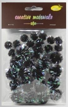 Pompony glitter (15-25mm), 30 szt. czarne