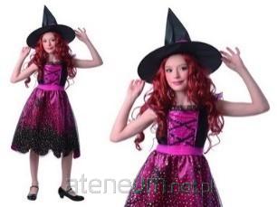 Różowa Czarodziejka, rozmiar S 110-120 cm, sukienka, kapelusz