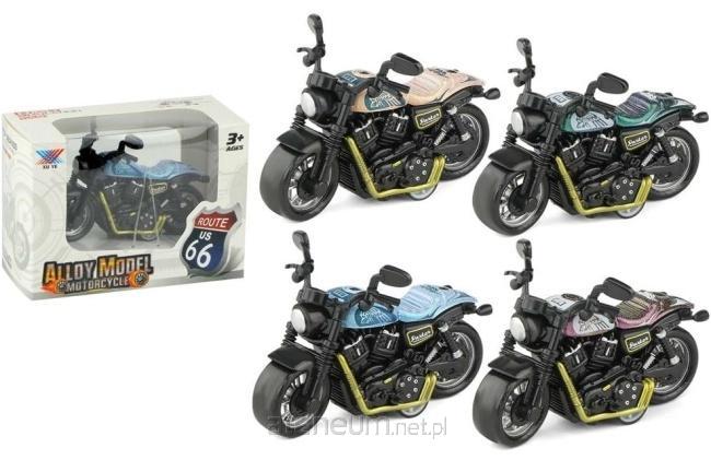 Odkryj ducha amerykańskiej wolności z tym szczegółowym modelem motocykla typu chopper, inspirowanym legendarną trasą Route 66. Motor wykonany jest z trwałego stopu metali z elementami plastikowymi, co zapewnia realizm i wytrzymałość. Każdy model charakteryzuje się precyzyjnym wykonaniem, grubymi oponami, stylizowanymi malowaniami na baku i siodełku oraz ruchomymi kierownicą i kołami. Motor jest dostępny w czterech wariantach kolorystycznych, każdy z unikalną grafiką na bakach i siedzeniach, co sprawia, że jest świetnym przedmiotem kolekcjonerskim.