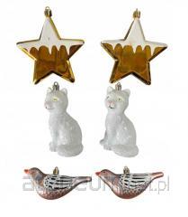Piękne ozdoby choinkowe w zestawie 6 szt. Ozdoby świąteczne dodają klasy i elegancji świątecznym dekoracjom. Niezbędne do ozdabiania choinek, kompozycji i wieńców. Bezpieczne - wykonane z wytrzymałego plastiku, nie stłuką się po upuszczeniu. Zestaw zapakowany w przezroczyste pudełko, co ułatwia przechowywanie. Świetny pomysł na prezent.