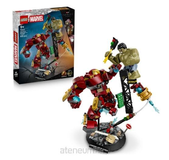 Iron Mana walczy z Hulkiem, korzystając z pomocy swojej zbroi Hulkbuster, na ulicy pełnej gruzu, zawalonych konstrukcji stalowych i sygnalizacji świetlnej, którą Hulk może wykorzystać jako broń. Figurka Hulkbustera jest w pełni ruchoma, co poszerza możliwości zabawy. Dzięki solidnej podstawce i płytce z nazwą dzieci mogą wykorzystać swój model kolekcjonerski jako dekorację do pokoju lub ozdobę na biurko. Można też odłączyć minifigurki LEGO | Marvel, aby odgrywać własne przygody superbohaterów.