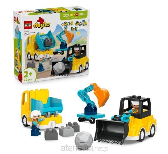 Ten zestaw klocków LEGO DUPLO dla chłopczyka i dziewczynki składa się z 22 klocków, z których można zbudować trzy pary ciężarówek: ładowarkę z lemieszem, która napełnia ciężarówkę klockami DUPLO, koparkę i lawetę z obrotowym ramieniem lub podnośnik nożycowy i drugą lawetę z mniejszym hakiem do podnoszenia klocków. Zachęć małych konstruktorów do wykorzystywania kreatywności, umiejętności rozwiązywania problemów, wytrwałości i zdolności motorycznych, aby eksperymentować z różnymi rozwiązaniami i tworzyć pomysłowe ciężarówki. W zestawie klocków do budowania znajdują się również dwie figurki pracowników budowlanych, które maluchy mogą usadzić za kierownicą, aby obsługiwały pojazdy LEGO.