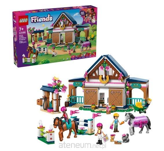 Dzieci będą się świetnie bawić, odkrywając zestaw klocków LEGO Friends Stadnina i szkółka jeździecka (42688). Ta pomysłowa zabawka dla 7-latki, dla dziewczynki i chłopca pozwala fankom i fanom jeździectwa odgrywać wszystkie etapy opieki nad końmi, obserwując Liann i Aliyę podczas lekcji z instruktorką Cindy.