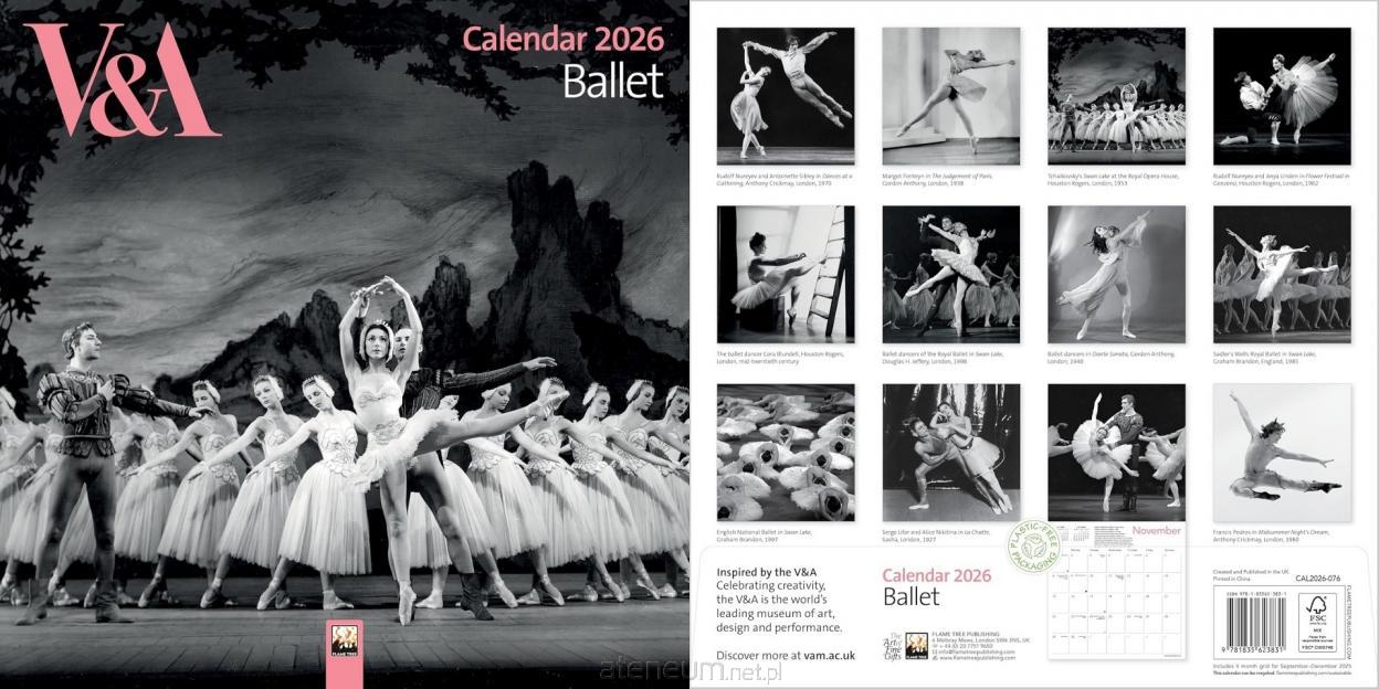 Kalendarz ścienny o wymiarach 300 300 mm, zatytułowany Ballet Wall Calendar 2026, wydany przez Flame Tree Publishing. Motywem przewodnim są eleganckie i pełne gracji ilustracje przedstawiające świat baletu od klasycznych spektakli po współczesne interpretacje tańca. Każda grafika przenosi w świat muzyki, ruchu i wyrafinowanej estetyki scenicznej, ukazując zarówno piękno formy, jak i emocjonalną ekspresję tancerzy.