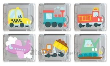 Wyrusz w kolorową, pełną świateł przygodę po świecie pojazdów! Każda kostka w tym zestawie zdobi urocza ilustracja autka - od wesołej taksówki, przez pędzący pociąg, aż po straż pożarną, samolot, wywrotkę i koparkę. To idealna propozycja dla małych miłośników motoryzacji i kreatywnej zabawy.