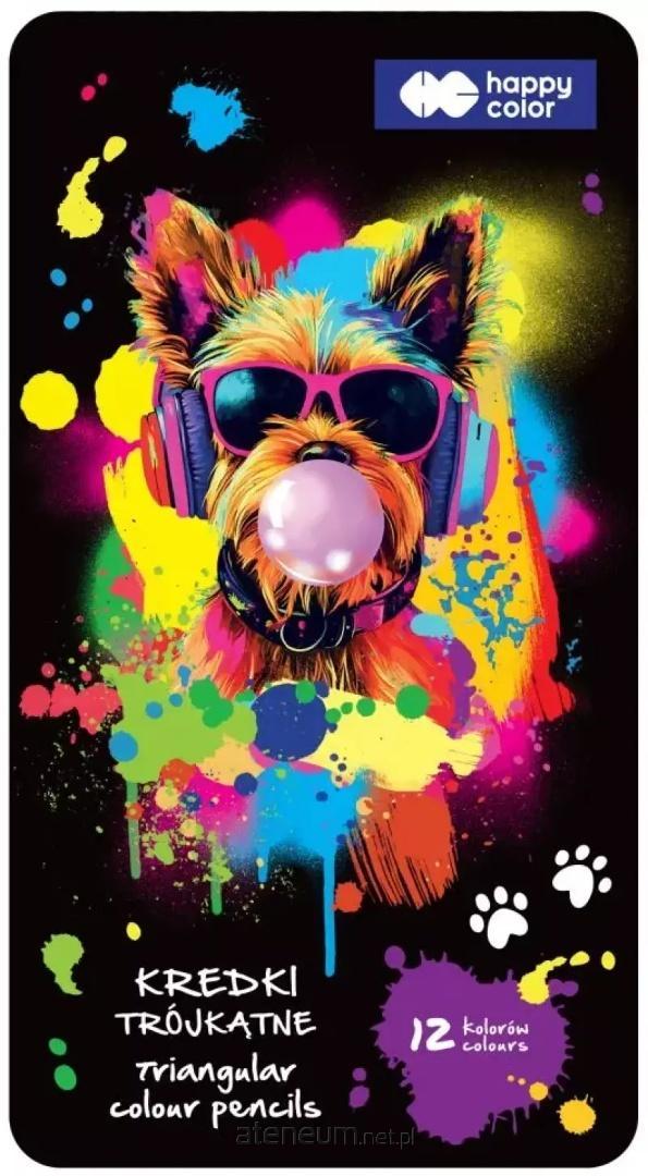 Kredki drewniane, szkolne, trójkątne, 12 kol. metal box, Happy Color