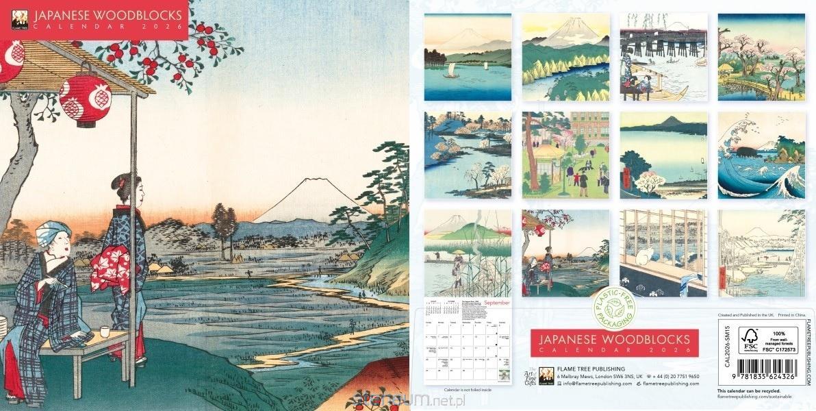 Ten subtelny kalendarz ścienny otwiera przed nami świat klasycznych japońskich drzeworytów - pejzaży pełnych górskich dolin, wijących się rzek, skał i naturalnego piękna, utkanych techniką mistrzów takich jak Hiroshige I, Hiroshige II czy Hiroshige III. Każda strona to oddzielne dzieło: misternie zarysowany krajobraz, barwy i detale, które przyciągają wzrok i pozwalają na chwilę zatrzymać się i uważnie podziwiać. Pod ilustracjami znajdziesz krótkie teksty przybliżające kontekst artystyczny - jakość odbitek, symbolikę natury i historię japońskiej tradycji drzeworytu. Kalendarz posiada czytelne datowanie z możliwością podglądu poprzedniego i następnego miesiąca, co czyni go jednocześnie pożytecznym narzędziem planowania. Wydrukowany na papierze z certyfikatem FSC i zapakowany bez plastiku, łączy w sobie elegancję, duch sztuki i odpowiedzialność ekologiczną - to piękna propozycja dla miłośników minimalizmu, natury i tradycyjnej estetyki Japonii.