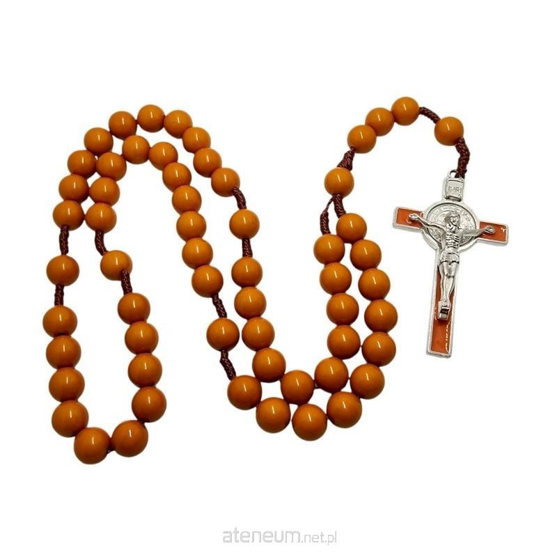 Rudobrązowy Różaniec z Krzyżem Św.Benedykta.