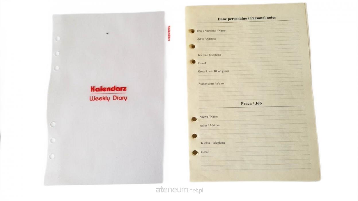 Układ kalendarza: Tygodniowy 162 strony.