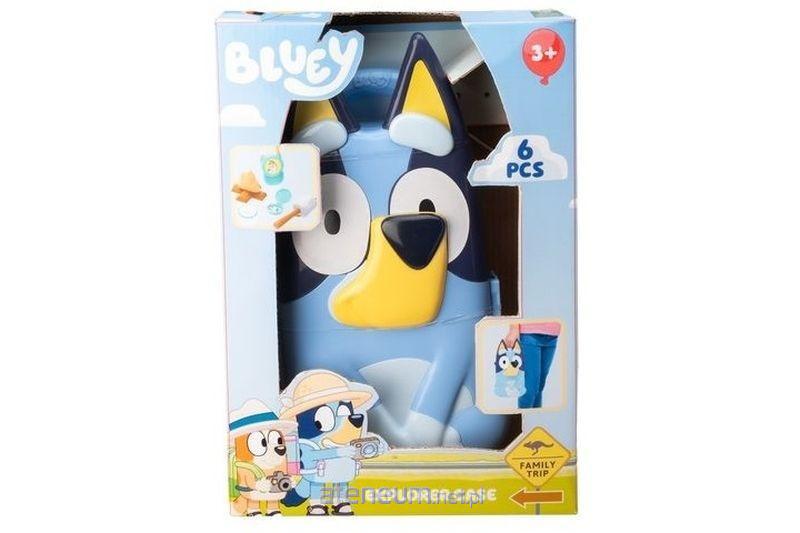 Zostań odkrywcą tak jak Bluey! Ta zabawna walizeczka zawiera akcesoria do odgrywania ról, takie jak krótkofalówka i kompas, które pomogą Ci w Twojej przygodzie. Gdy skończysz eksplorować i będziesz chciał rozbić obóz, znajdziesz w niej również ogień, którego możesz użyć do przypieczenia pianki na patyku! Ten zestaw zawiera również kubek kempingowy Bluey, aby cieszyć się ulubionym napojem podczas swoich przygód! Twarda obudowa w kształcie Bluey jest idealna dla małych fanów do przechowywania i zabierania ze sobą zabawki wszędzie, gdzie się udadzą. Ta zabawka promuje kreatywną zabawę w odgrywanie ról i wzmacnia interakcje społeczne.