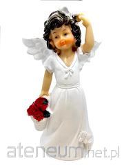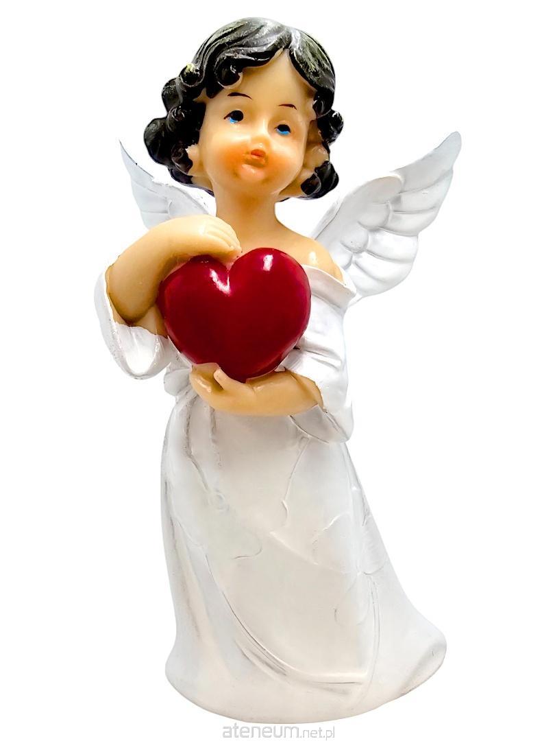 Aniołek przedstawiony jest w uroczej pozie, a w rączkach czule trzyma czerwone serce, symbolizujące głęboką miłość i dobroć. Ubrany jest w piękną, białą sukieneczkę, która podkreśla jego czystość i niewinność. Detale figurki są pięknie wykonane, z zachowaniem naturalnego koloru skóry i brązowych włosów, co nadaje mu realistycznego i ciepłego wyglądu. Całość uzupełniają piękne, misternie rzeźbione skrzydełka, podkreślające jego anielski charakter.