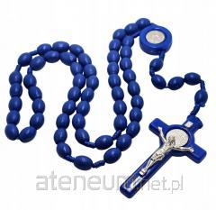 Centralnym elementem tego różańca jest pięknie wykonany łącznik z wizerunkiem "Jezu, Ufam Tobie". Ten mocny symbol miłosierdzia Bożego będzie nieustannym przypomnieniem o zaufaniu i nadziei. Całość wieńczy solidny, drewniany krzyż o imponujących wymiarach 14x9 cm, stanowiący mocny akcent i symbol odkupienia.