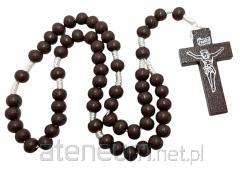 Różaniec został wykonany z trwałego szkła, a jego koraliki o średnicy około 9 mm są lekkie i gładkie w dotyku. Całość połączono solidnym, metalowym łańcuszkiem, co zapewnia trwałość.