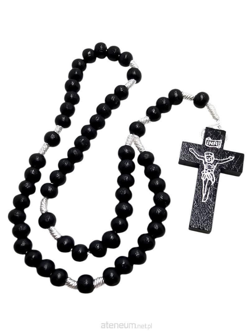 Kolor: Czarne koraliki, biały sznurek, czarny krzyż