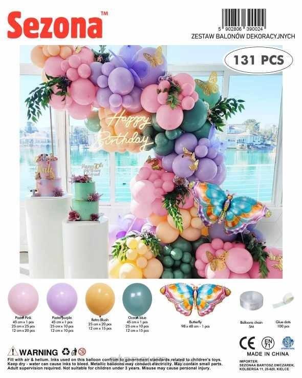 Zestaw balonów dekoracyjnych - pastelowy z motylem, 131 szt.