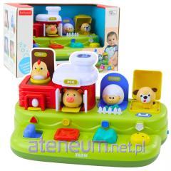Centralnym elementem zestawu jest wiertarka stołowa z regulacją wysokości oraz ruchomymi elementami roboczymi. Podczas uruchomienia zabawka wydaje dźwięki oraz emituje efekty świetlne, co zwiększa realizm zabawy i angażuje dziecko na dłużej. Różnorodne akcesoria umożliwiają symulowanie skręcania, wiercenia i montażu, rozwijając zdolności manualne, koordynację ręka oko oraz kreatywność.