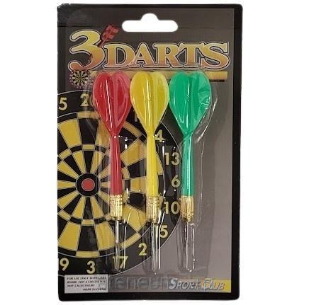 Podnieś poziom swoich domowych turniejów dzięki zestawowi trzech solidnych rzutek do darta. Komplet zawiera trzy sztuki lotek z metalowymi grotami które gwarantują precyzyjne wbijanie się w tarczę i trwałość podczas wielokrotnego użytkowania. Każda rzutka wyróżnia się innym kolorem piórka co pozwala graczom na łatwe rozróżnienie swoich wyników podczas wspólnej zabawy. Piórka zostały zaprojektowane tak aby stabilizować tor lotu zapewniając powtarzalność rzutów. Złote wykończenie uchwytu dodaje zestawowi klasycznego wyglądu a prosta budowa sprawia że rzutki dobrze leżą w dłoni. Produkt jest przeznaczony dla użytkowników rekreacyjnych szukających niezawodnego sprzętu do aktywnego spędzania czasu z przyjaciółmi lub rodziną.