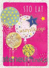 Karnet B6 Urodziny - Balony na różu
