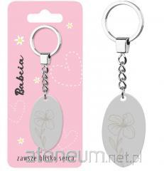 Brelok do kluczy dla Babci z napisem BABCIA NAJLEPSZA NA ŚWIECIE i delikatnym grawerem kwiatowym