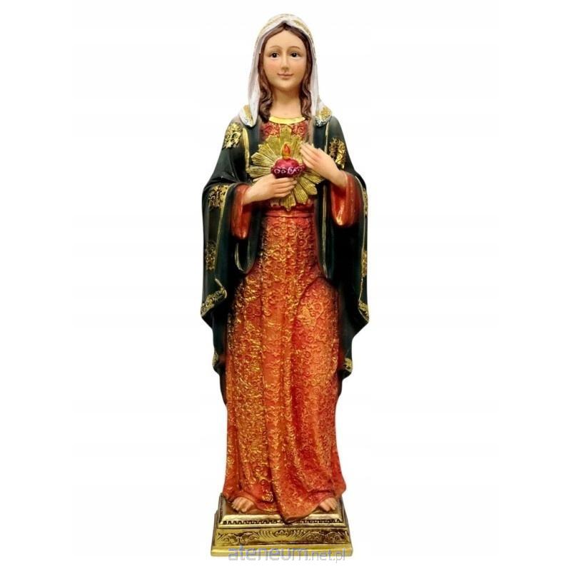 Odkryj majestat i duchową głębię z naszą figurą Maryi, Królowej Niebios, odzianej w królewskie szaty ze złotymi zdobieniami. Maryja, z delikatnym gestem, wskazuje na swoje gorejące Serce, symbolizujące miłość i oddanie. Wykonana z wysokiej jakości żywicy syntetycznej, ta 34-centymetrowa figura jest nie tylko piękną ozdobą, ale także przedmiotem kultu, idealnym do domowego ołtarzyka lub jako wyjątkowy prezent.