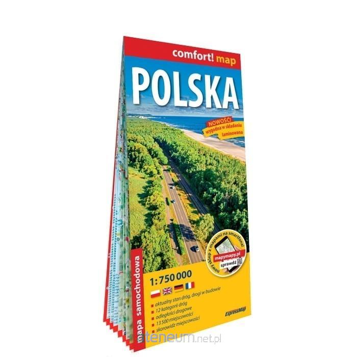 Polska laminowana mapa samochodowa 1:750 000