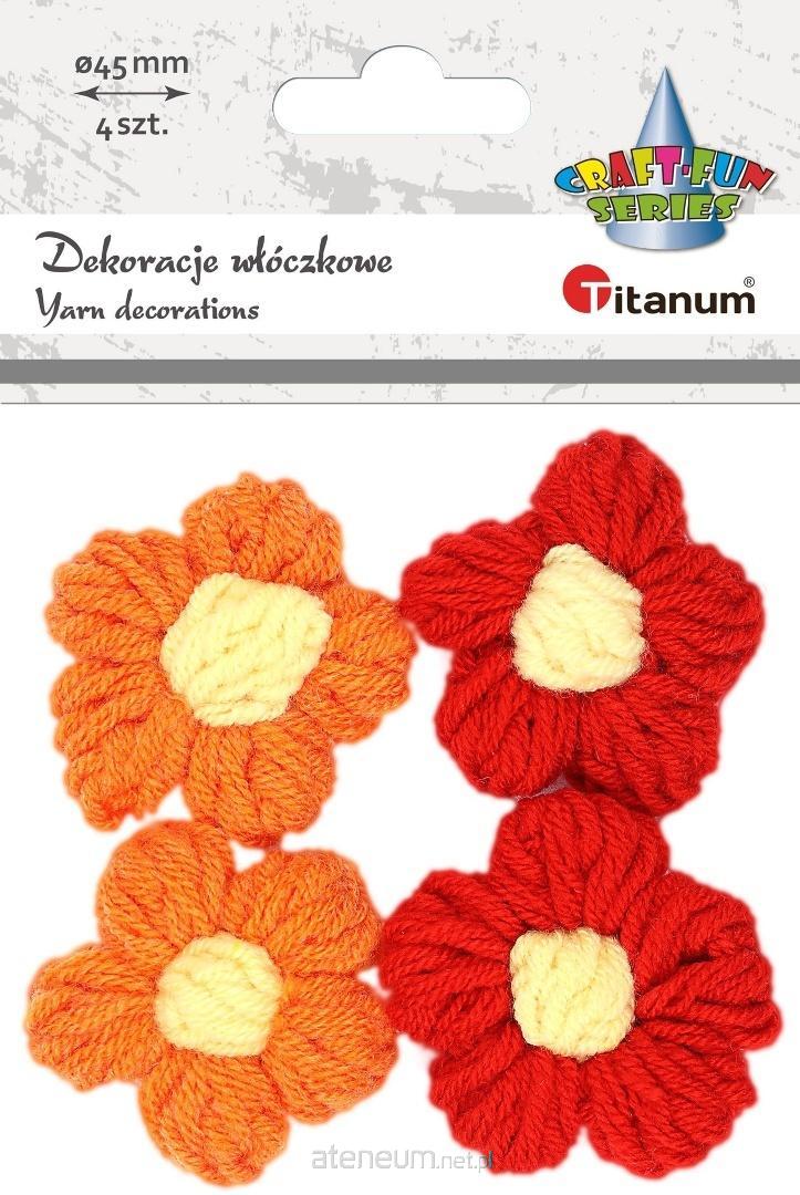 Dekoracje włóczkowe kwiatki 45mm pomarańczowe, czerwone 4szt.