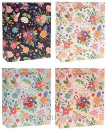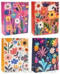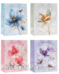 Torebka prezentowa uniwersalna L Kwiaty brokat mix