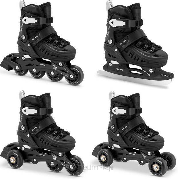 Regulowane rolki 4w1 to rolki, wrotki, rolko-wrotki oraz łyżwy w jednym. But posiada trójstopniowy system zapinania i twardą skorupę, które gwarantują doskonałe dopasowanie, komfort i bezpieczeństwo podczas jazdy. Wyposażone w półprzezroczyste kółka, które nadają im nowoczesny, stylowy wygląd. Jak ustawić rozmiar? Wystarczy odpiąć rzep, nacisnąć PUSH i wysunąć but na odpowiednią odległość.