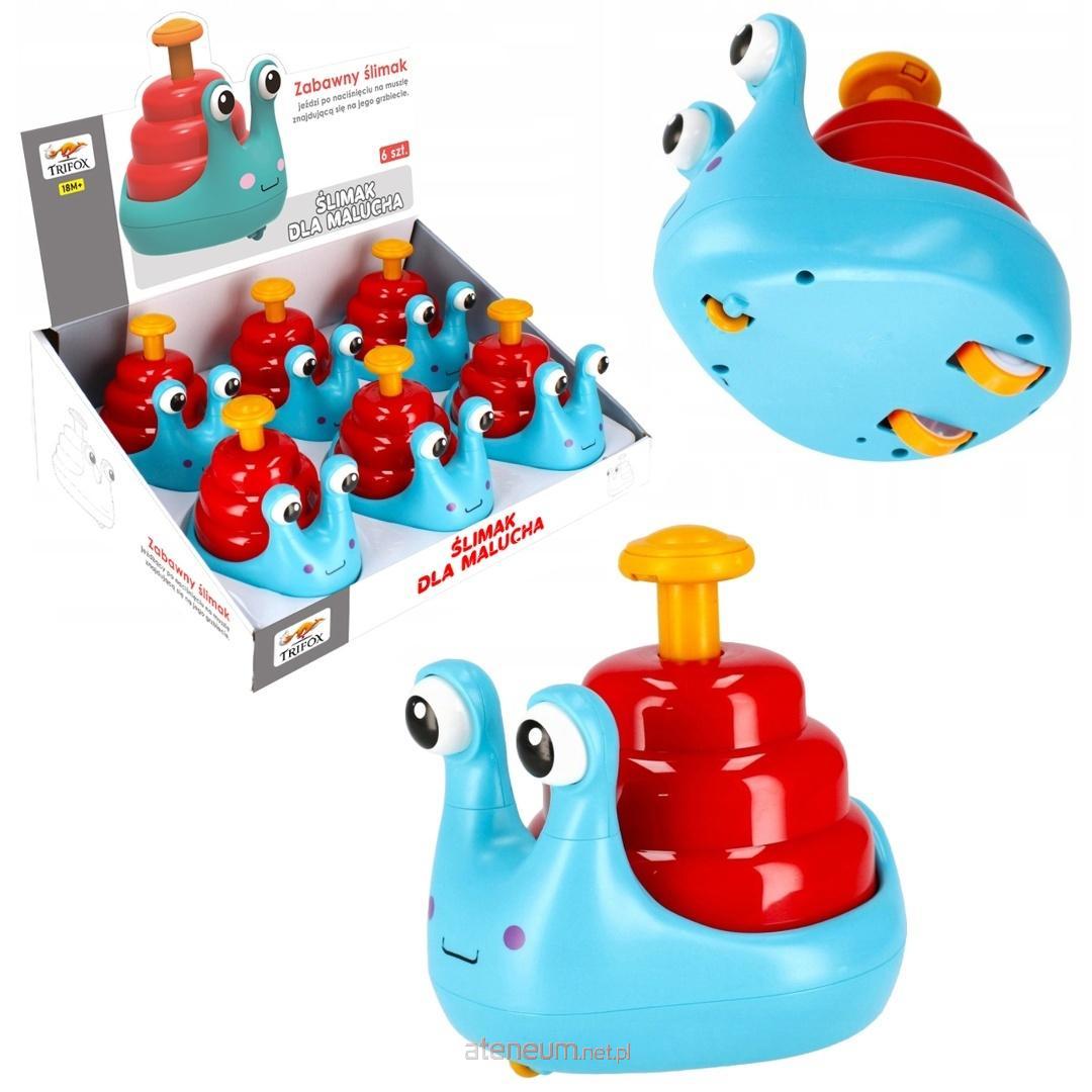 Wesoły, kolorowy ślimak to idealna zabawka dla najmłodszych dzieci, która łączy w sobie uroczy wygląd z prostym, mechanicznym napędem. Zaprojektowany z myślą o małych rączkach, stymuluje rozwój motoryczny i zachęca dziecko do aktywnej zabawy w podążanie za przesuwającym się zwierzątkiem.