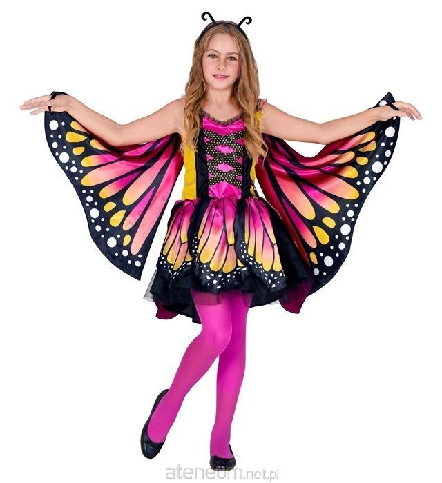 Strój składa się z pięknej sukienki typu tutu, wykonanej z wielokolorowego materiału, który wspaniale imituje delikatne skrzydła motyla. Zwiewna spódniczka nadaje stylizacji lekkości i sprawia, że każdy ruch wygląda niezwykle efektownie. Całość uzupełniają urocze antenki, które dodają kostiumowi bajkowego charakteru i sprawiają, że przebranie jest kompletne.
