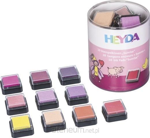 Zestaw 10 poduszek do stempli, każda nasączona tuszem w innym kolorze. Wielkość podeszki to 3 x 3 cm. Tusz na bazie oleju nadaje się na papier, karton, bibułę itp.