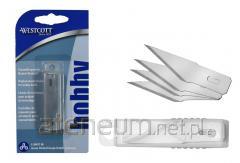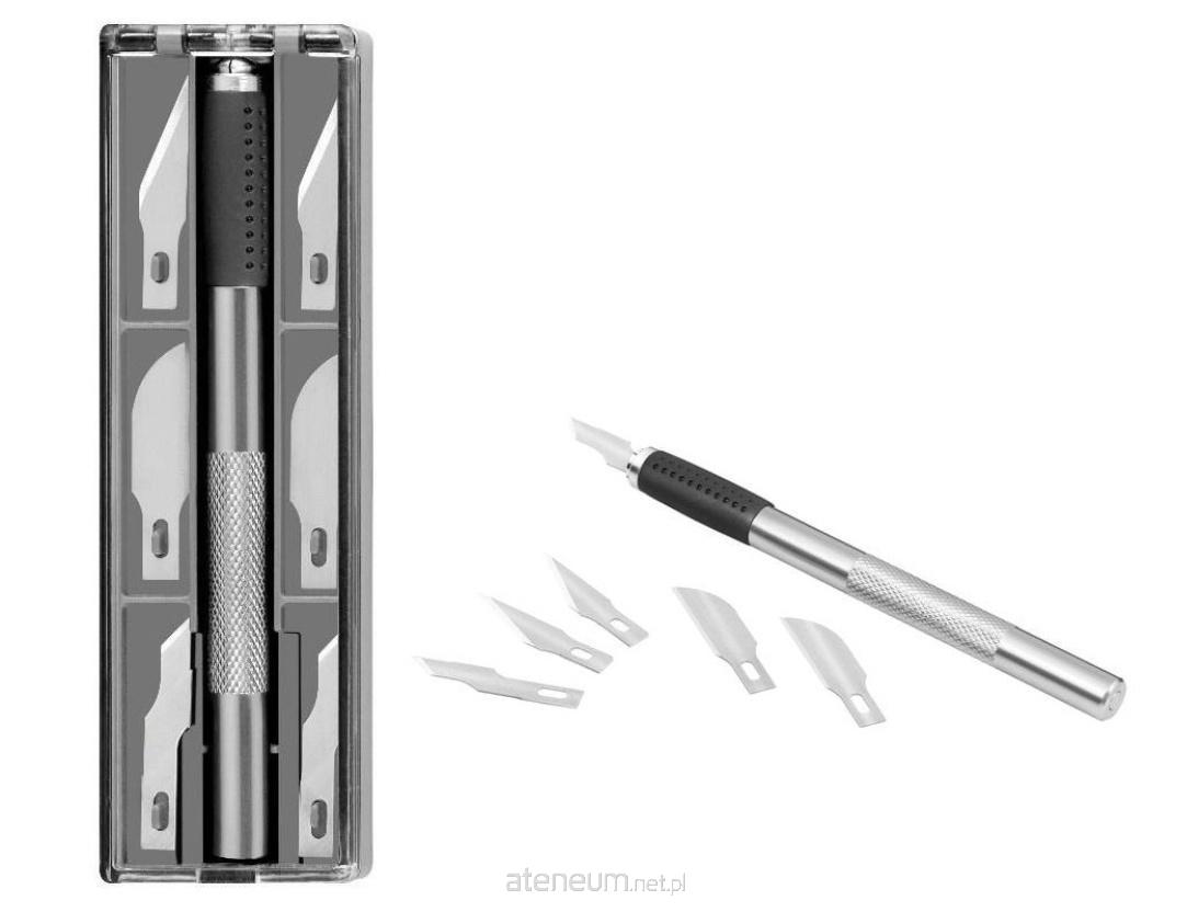 Zestaw zawiera jeden wytrzymały metalowy uchwyt oraz 6 różnych wymiennych ostrzy. Magnes umiejscowiony w końcówce uchwytu ułatwia wyjmowanie ostrzy z pudełka.