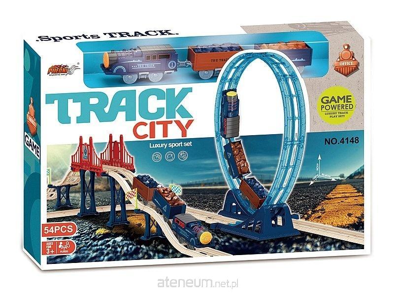 Zestaw tor z kolejką na baterie, z pętlą i mostem, wym.rozłożonego 182x85,6x41cm, 54 części, akumulator i kabel USB do ładowania; 55,5x36,5x9,5cm, Box