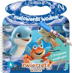 Zestaw z serii "Zadanka & Malowanki Wodne" zawiera zeszyt z zadankami i malowankami powleczonymi specjalną powłoką, która zmienia swoje właściwości pod wpływem wilgoci, oraz pisak ze zbiorniczkiem na wodę. Malowanki wielorazowego użytku - ponownie tracą kolor po wyschnięciu. Elementy zestawu nie podlegają sprzedaży osobno.