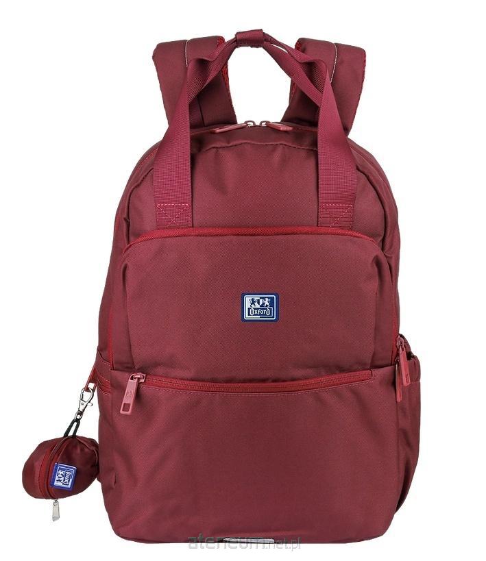 Plecak Oxford B-Ready z rączką to funkcjonalny i stylowy model stworzony z myślą o codziennym użytkowaniu. Wykonany z recyklingowanego poliestru, jest trwały, lekki i przyjazny dla środowiska. Klasyczny design w połączeniu z dopracowanymi detalami sprawia, że doskonale sprawdza się zarówno w szkole, jak i w drodze do pracy czy na zajęcia dodatkowe. Plecak posiada przestronną komorę główną z usztywnioną kieszenią na laptopa, dodatkowe przegrody na akcesoria oraz brelok na klucze. Dwie boczne kieszenie jedna na bidon, druga zamykana na suwak zapewniają wygodny dostęp do drobiazgów. Miękkie, piankowe plecy z siatką gwarantują komfort noszenia, a odblaskowe elementy zwiększają widoczność po zmroku. W zestawie znajduje się worek przeciwdeszczowy, który chroni zawartość przed wilgocią, oraz gumowe nóżki dystansowe, dzięki którym spód plecaka pozostaje suchy i odporny na przetarcia.