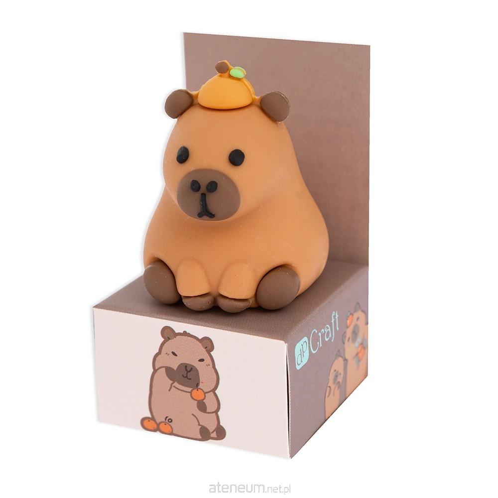 Trójwymiarowa gumka do mazania w kształcie kapibary z pomarańczą na głowie. Urocza i funkcjonalna, idealna do szkoły i biura. Doskonały dodatek do przyborów szkolnych.