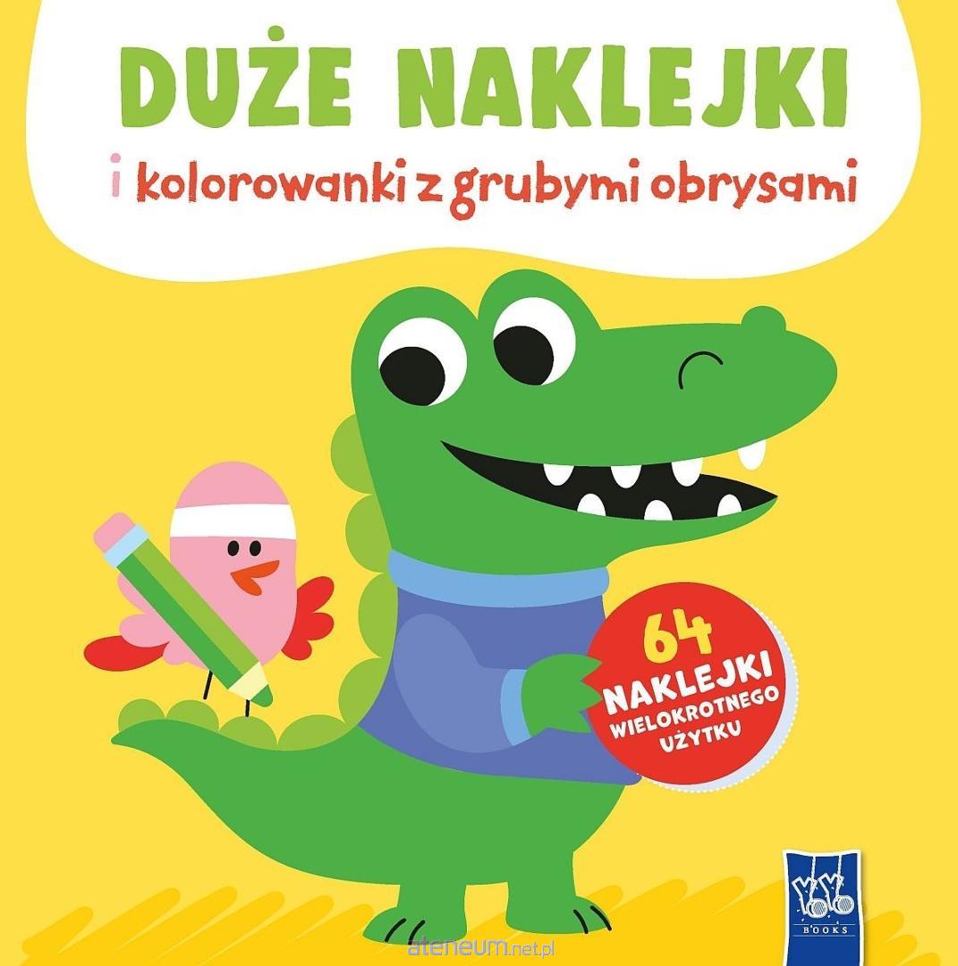 Duże naklejki wielokrotnego użytku urozmaicą zabawę. Naklejka w dolnym rogu na każdej stronie przedstawia obiekt, na którym maluszek może się wzorować, kolorując rysunek.