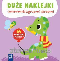 Duże naklejki wielokrotnego użytku urozmaicą zabawę. Naklejka w dolnym rogu na każdej stronie przedstawia obiekt, na którym maluszek może się wzorować, kolorując rysunek.