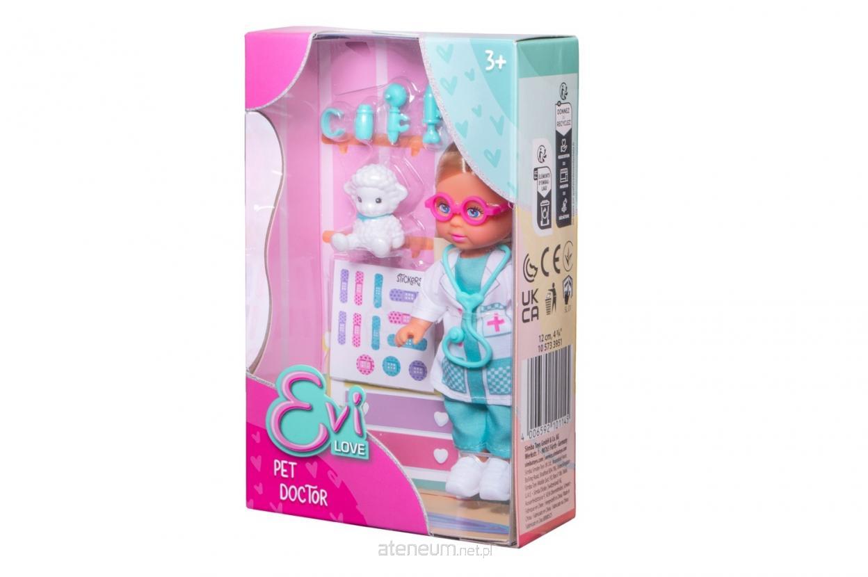 EL Evi Weterynarz\nEvi jako doktor opiekuje się swoimi pluszowymi zwierzętami, zestaw zawiera akcesoria lekarskie i arkusz naklejek, 12 cm, 3l+
