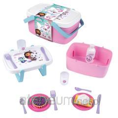 Smoby Stitch koszyk piknikowy 2 w 1 Koszyk piknikowy i stolik w jednym, wystarczy złożyć uchwyty koszyka aby przygotować funkcjonalny stolik piknikowy. W zestawie 16 akcesoriów w tym: szaszłyk owocowy, naczynia, sztućce, kubki. Wyprodukowano we Francji. Wymiary: 18x25,5x11 cm, 3l+