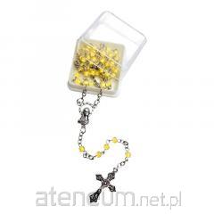 Różaniec posiada długość całkowitą 41 cm i obwód 56 cm, dzięki czemu idealnie nadaje się do noszenia na szyi lub do modlitwy. Zestaw jest zapakowany w estetyczne pudełko o wymiarach 38 x 38 mm, co czyni go doskonałym pomysłem na prezent.