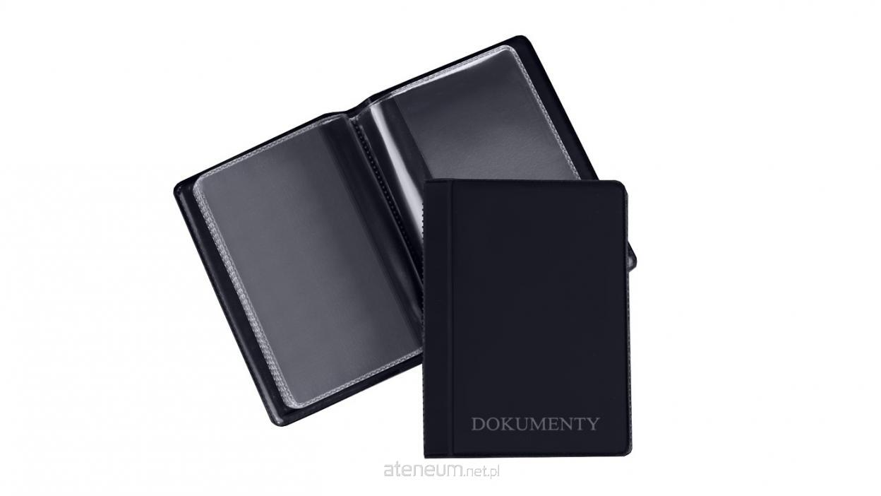 Okładka wykonana z czarnej folii PVC, wewnątrz usztywniona tekturą. Wyposażona w 6 podwójnych koszulek mieszczących 14 dokumentów lub kart. Kieszenie na wewnętrznej stronie okładek. Poszerzany grzbiet, zapewniający równomierny rozkład zawartości. Okładka pionowa w kieszonkowym formacie.