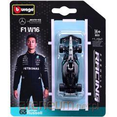 BOLID F1 Mercedes AMG W15 2024 Lewis Hamilton 1:24 BBURAGO 18-28063\nBOLID F1 Mercedes-AMG W15 (2024) #44 Lewis Hamilton\noryginalny produkt marki Bburago,\noficjalny, licencjonowany wzór pojazdu,\nmetalowy model z plastikowymi elementami,\nperfekcyjne odwzorowanie szczegółów,\nmodel umieszczony na plastikowej podkładce oraz zamknięty w ochronnej gablotce.\nWymiary:\n\ndługość 23cm,\nszerokość 9cm,\nwysokość 5cm.\nWymiary opakowania: 26 x 12 x 9cm.\n\n\nMercedes-AMG F1 W15 E Performance to bolid Formuły 1 na sezon 2024, będący efektem gruntownej przebudowy po rozczarowującym sezonie 2023.\n\nW15 otrzymał nowe podwozie i obudowę skrzyni biegów, zmieniono również konfigurację tylnego zawieszenia z pull-rod na push-rod, co poprawiło stabilność tylnej osi, będącej wcześniej źródłem problemów.\n\nAerodynamika została zoptymalizowana poprzez przeprojektowanie nosa i przedniego skrzydła, a także zastosowanie innowacyjnych bocznych wlotów powietrza w kształcie litery P. W15 napędzany jest przez hybrydową jednostkę napędową Mercedes-AMG F1 M15 E Performance.\n\nW sezonie 2024 bolid odniósł cztery zwycięstwa, w tym triumfy Hamiltona na torach Silverstone i Spa, oraz Russella w Austrii i Las Vegas, co zapewniło zespołowi czwarte miejsce w klasyfikacji konstruktorów .