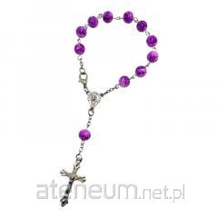 Elegancka i głęboko symboliczna zapinana dziesiątka różańca, idealna do noszenia na co dzień lub do modlitwy w podróży. Różaniec wykonany jest na trwałym łańcuszku, co gwarantuje jego wytrzymałość. Charakteryzuje się wyjątkowymi, złoto-fioletowymi koralikami (o perłowym lub żywicznym połysku), które nadają mu szlachetnego wyglądu. To doskonały wybór dla osób czczących kult Jezusa Miłosiernego.