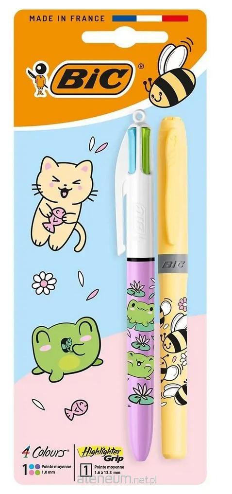 Długopis 4 Colors Kawaii mix + zakreślacz żółty BIC