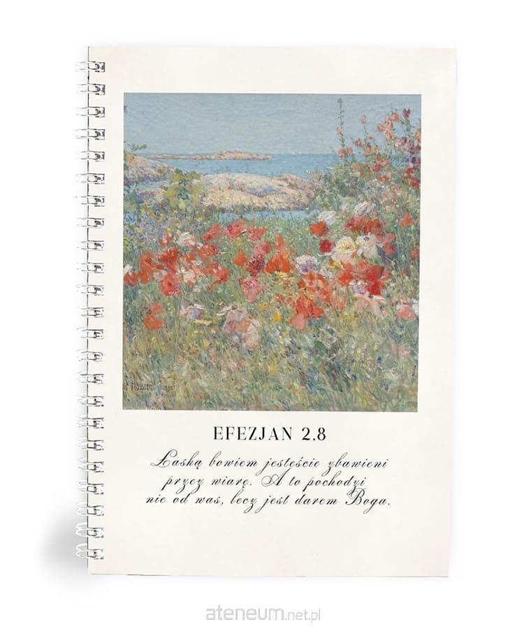 Mój dziennik Efezjan 2,8 został stworzony z myślą o tych, którzy potrzebują codziennego przypomnienia, że łaska jest darem wolnym, niezasłużonym i nieustannie obecnym. Okładka prezentuje zachwycający malarski pejzaż pełen kwiatów, kolorów i światła, który symbolizuje nowe życie i Bożą dobroć.