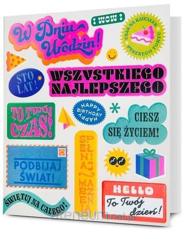 Kartka zawiera życzenia i kolorowy środek.